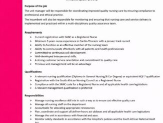 Emalahleni Private Hospital has announced a new round of hiring, offering multiple nursing opportunities across several specialized units. This recruitment drive is aimed at qualified […]